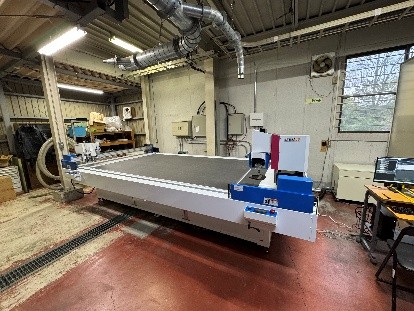 白上商会様は、本補助金を活用し、平型カッティングマシン「AS2616FW」を導入しました。CADデータと連携して設計図どおりにカットできるこのマシンは、従来の直線カットだけでなく、溝掘り、テーパー加工、斜めカットなど、建築現場で求められる精密な形状を高精度で再現することができます。